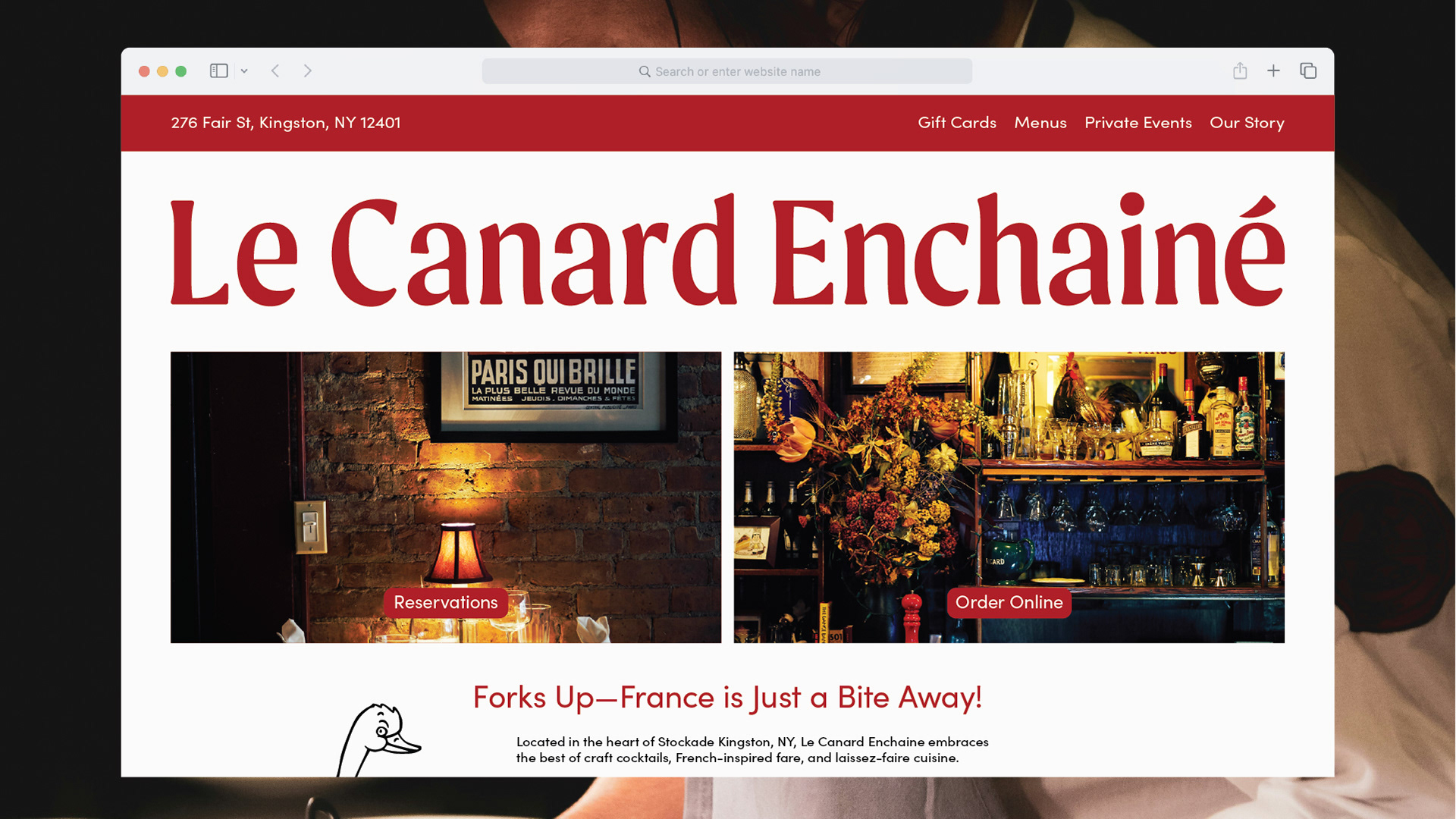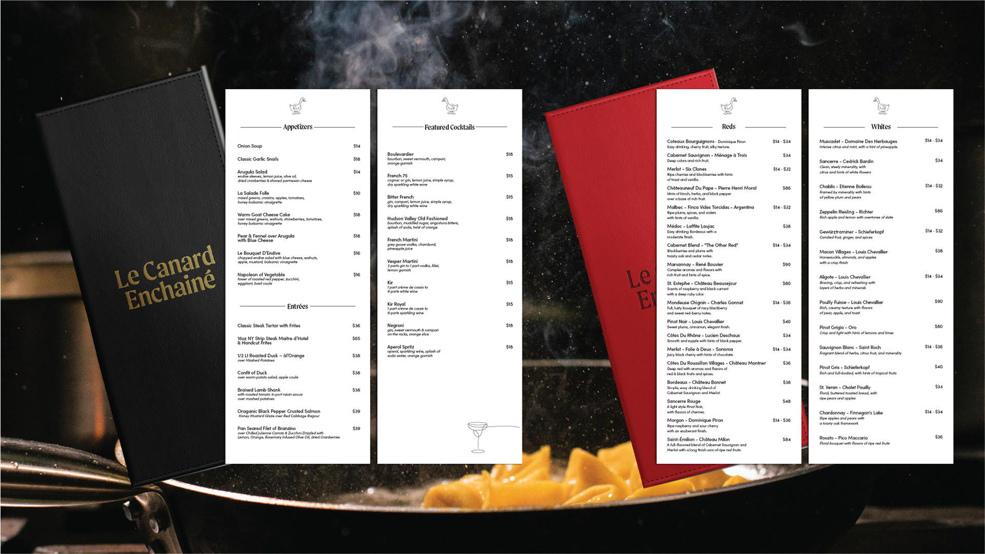 Le Canard Enchaine is a Kingston staple, serving classic French bistro fare with warmth, style, and soul. Since 1996, it’s been a destination for timeless cuisine and spirited dining in the Hudson Valley.